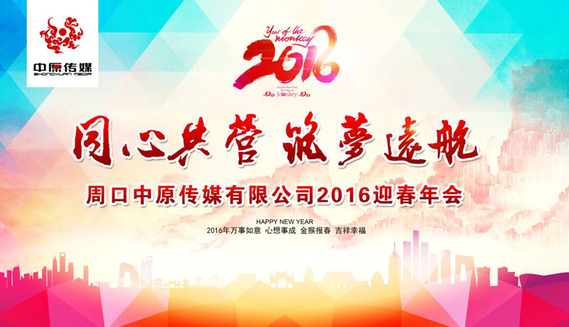 回首2015我們銳意進(jìn)取、不懼艱難,展望2016我們滿懷憧憬、激情澎湃,讓我們一起用信心和勇氣,昂首闊步,為我們中原傳媒的發(fā)展打下堅實的基礎(chǔ),去書寫更加燦爛的未來!