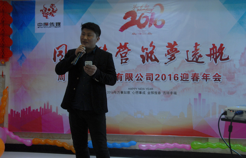 中原傳媒大掌門廖總致辭,感謝中原傳媒全體員工一年以來辛勤的付出,推動了公司長足的發(fā)展,廖總為大家總結(jié)2015,暢談2016,目標(biāo)堅定,讓大家知道,跟著他走,有肉吃!領(lǐng)導(dǎo)講話飽含深情,催人奮進(jìn),我們必將強(qiáng)力助推2016年工作再上一個新臺階!